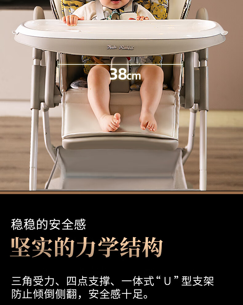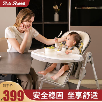 HAIR RABBIT Baby Highchair Baby Home Children's Eating High Chair with Tray Multi functional Child Learning Chair Mousse White 【 Image Price Brand Quotation 】-