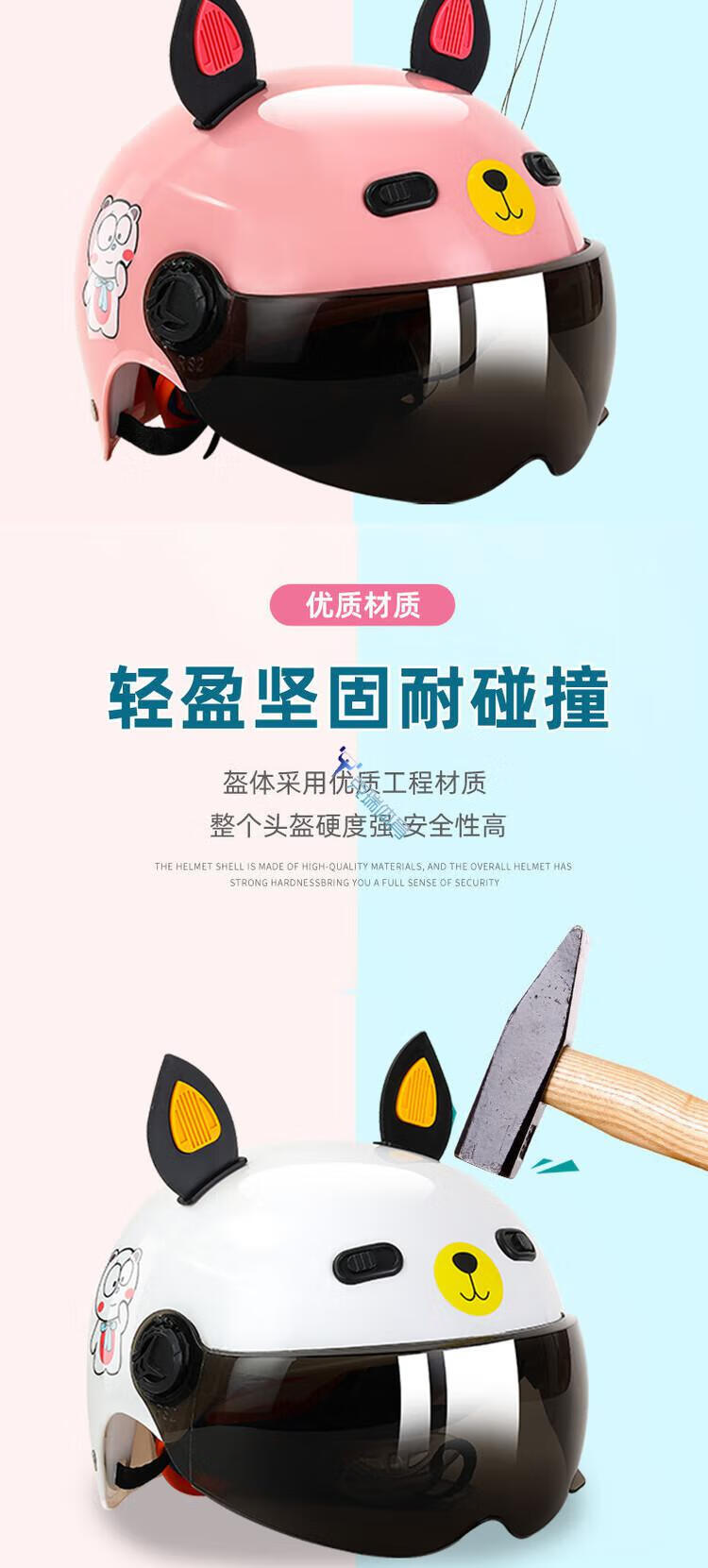 Picture Ying Baby Helmet 1-3 Year Old Ultra Light Children Helmet 2-14 Year Old Boys and Girls Baby Middle School Children Learn Yellow+Sunscreen Tea Glasses+Ears+Small Wind Car One Size 【 Image Price Brand Quotation 】-